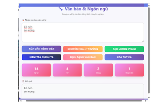 TextM Văn bản & Ngôn ngữ is een krachtige Chrome-extensie, speciaal ontworpen voor Vietnamese gebruikers die snel en efficiënt tekst willen bewerken. Deze gratis tool biedt een scala aan functies zoals het verwijderen van diakritische tekens, het omzetten van hoofdletters naar kleine letters, en real-time tekststatistieken. De interface is modern en gebruiksvriendelijk, met een aantrekkelijke gradient en responsief ontwerp dat geschikt is voor verschillende schermformaten.